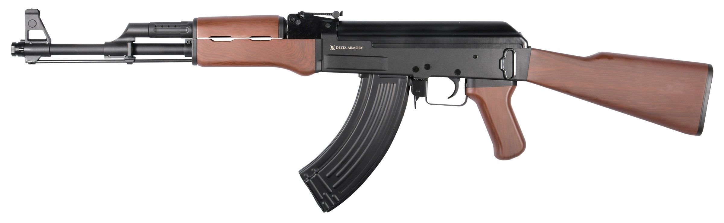 AK-47 airsoft Delta Armory noir & effet bois livrée avec batterie 9,6 V