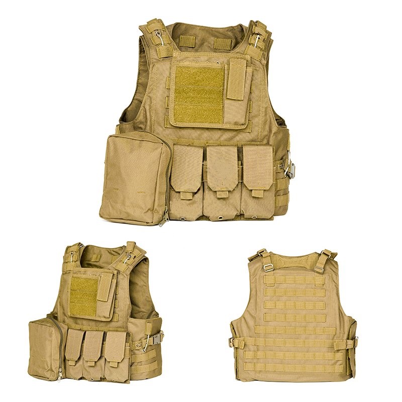 Des plaques pare-balles ou des pads d'entraînement (non inclus) peuvent être insérés dans la veste.