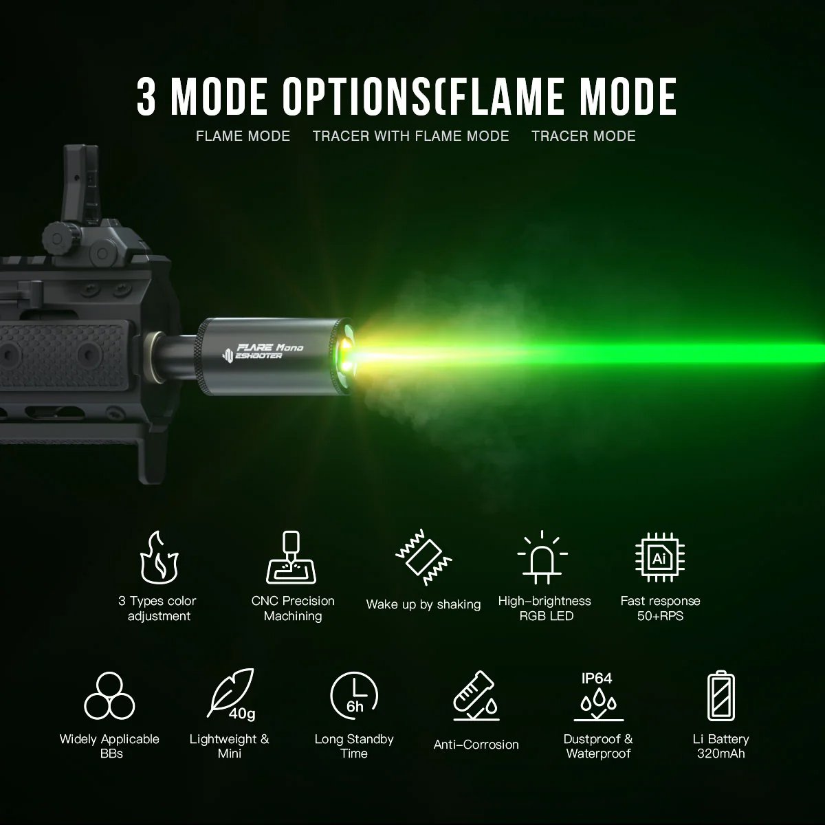 Le Flare Mono est la version monochrome de la série Flare Tracer Unit - conçue pour les joueurs qui n'ont pas besoin de fonctions avancées, mais qui veulent un effet