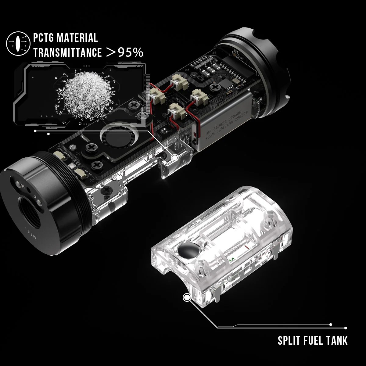 - Réservoir d'huile PCTG divisé - remplissage facile de l'huile fumigène