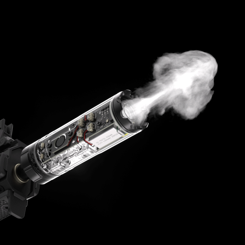 Le E-Shooter Flare Smoky BT est une unité de traçage avancée pour les repliques d'airsoft qui combine un effet de fumée simulée, une traînée de traçage et un flash de bouche